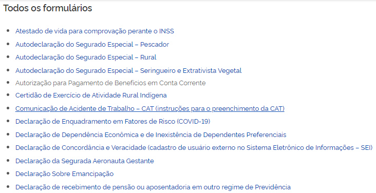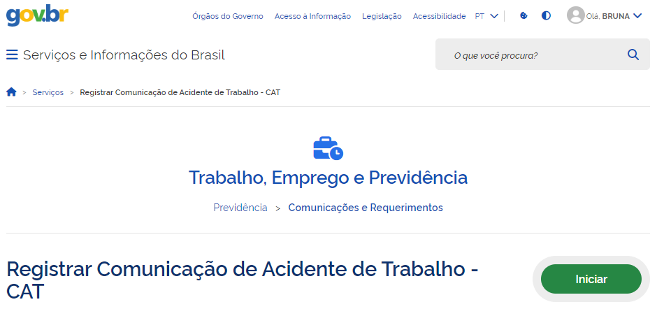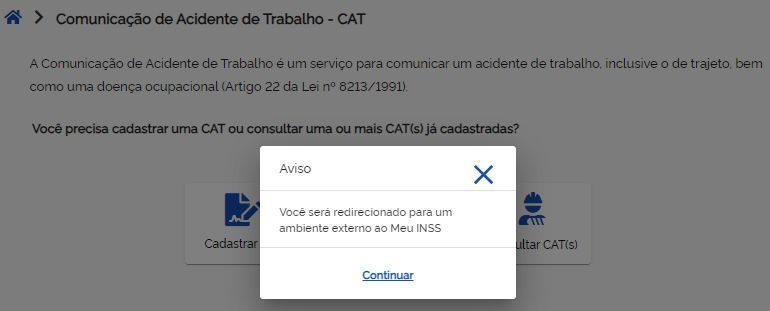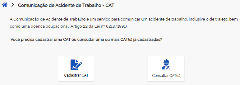 - Abrir CAT pela internet: site principal do INSS.