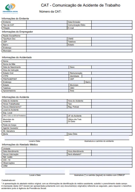 A Comunicação de Acidente de Trabalho (CAT) é um documento oficial.
