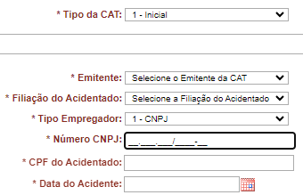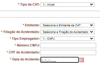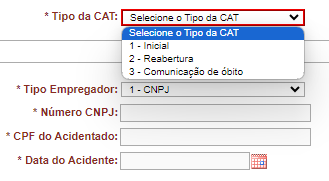 - Atenção! A CAT de comunicação de óbito deve ser feita somente depois que a CAT inicial for aberta.