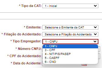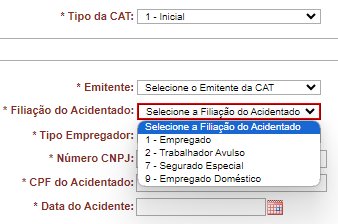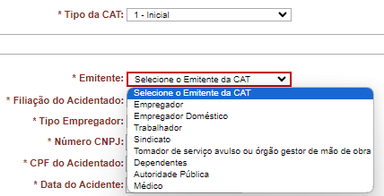 9. Se você tiver selecionado a CAT “Inicial”, agora selecione o emitente da CAT: