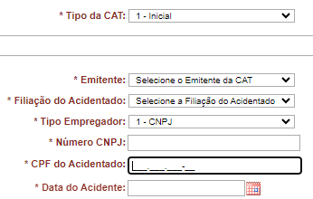 13. Digite o CPF do acidentado;