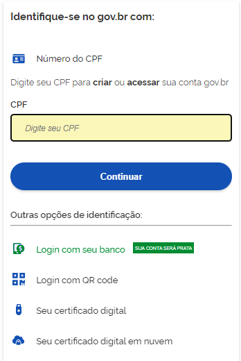 2. Clique em “Entrar com gov.br”;