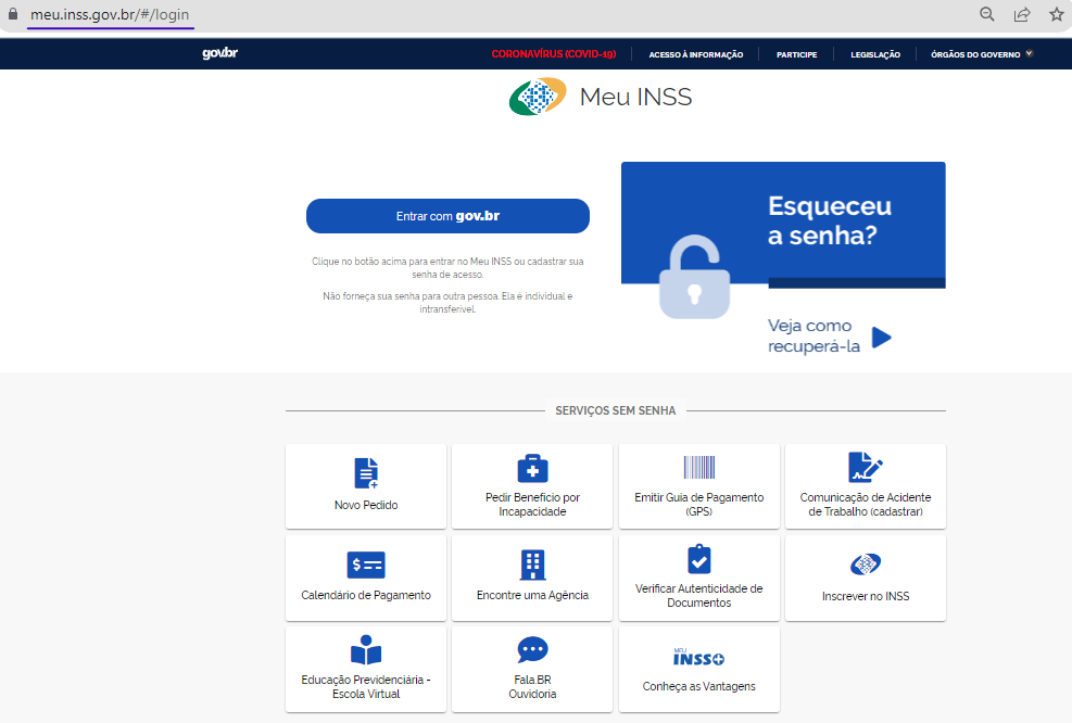 - Entre no site principal do INSS;
